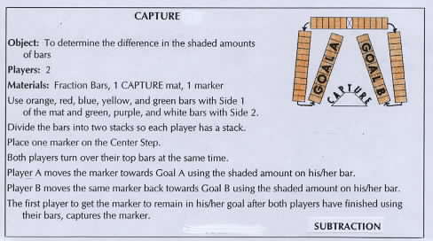 | Materials: Deck of Fraction Bars, Capture mat, and marker for each pair of players | ||||||||||||||||||