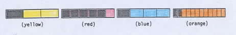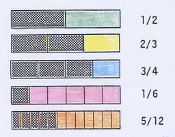 | The fraction games are usually played in the students' spare time, after regular assignments have been completed. The readiness period for using the bars and playing the games should not be rushed. Preferably, the games should be played over several weeks rather than during a concentrated period. When fraction numerals are introduced, they will be used by students as a convenient notation for representing ideas with which they are familiar.